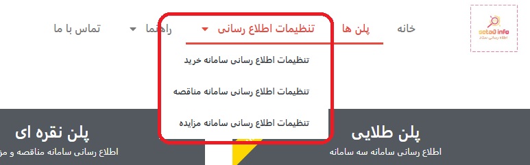 نکته : تنظیمات اطلاع رسانی بسنه به انتخاب پلن مورد نظر شما باز می شود به عنوان مثال اگر پلن طلایی را تهیه نمائید تنظیمات اطلاع رسانی هر سه سامانه برای شما باز می شود و اگر پلن مناقصه را تهیه نمائید فقط تنظیمات اطلاع رسانی سامانه مناقصه برای شما باز می شود