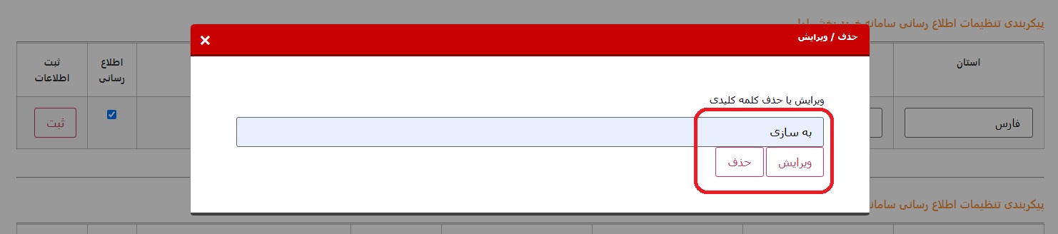 - ویرایش یا حذف تنظیمات اطلاع رسانی