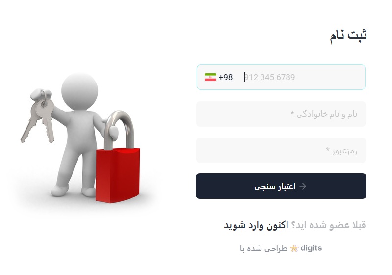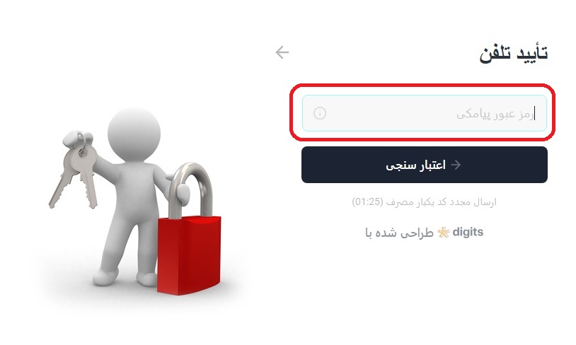 در این قسمت با وارد کردن فیلد های شماره موبایل ، نام و نام خانوادگی و رمز عبور و زدن دکمه اعتبار سنجی جهت تائید ثبت نام یک کد تائید به شماره موبایلی که وارد کرده اید ارسال میگردد
